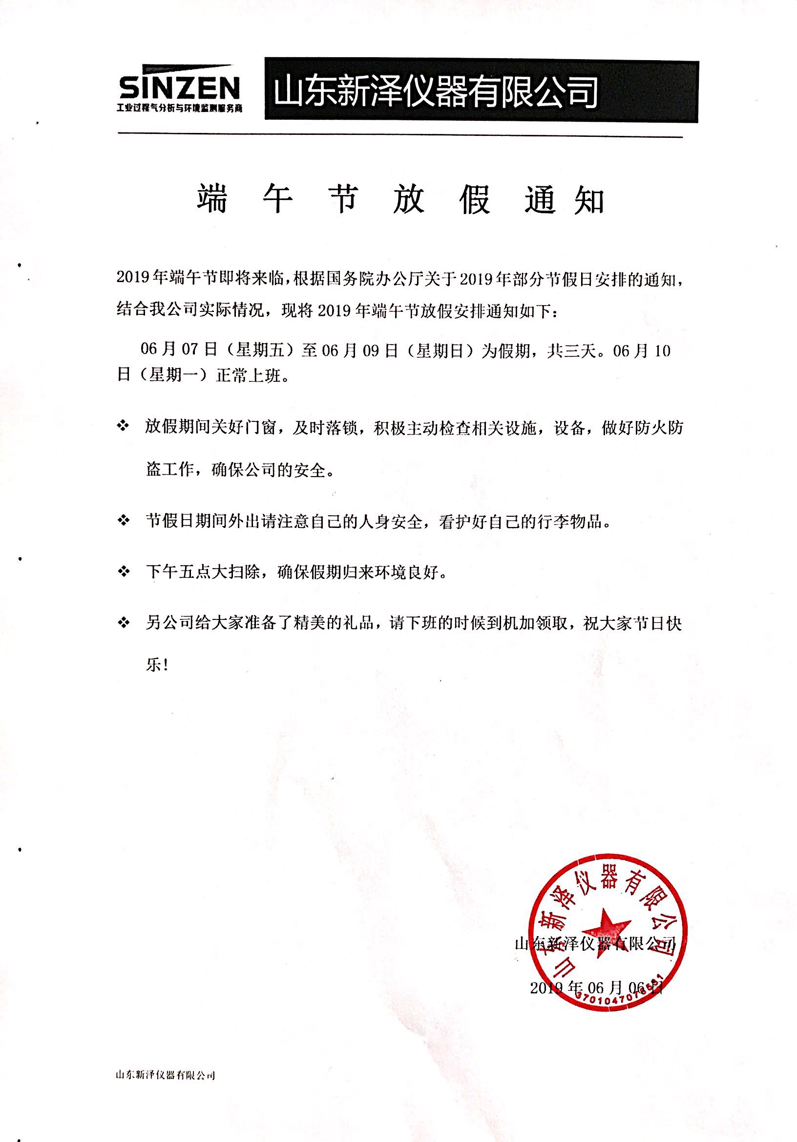 新澤儀器:端午節(jié)放假通知(06月07日 - 06月09日)