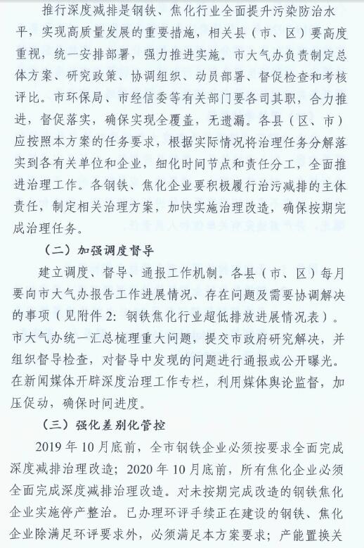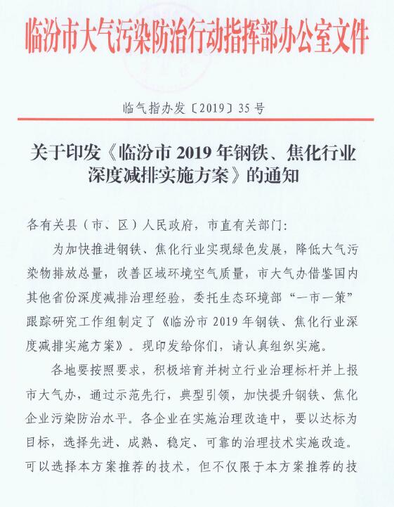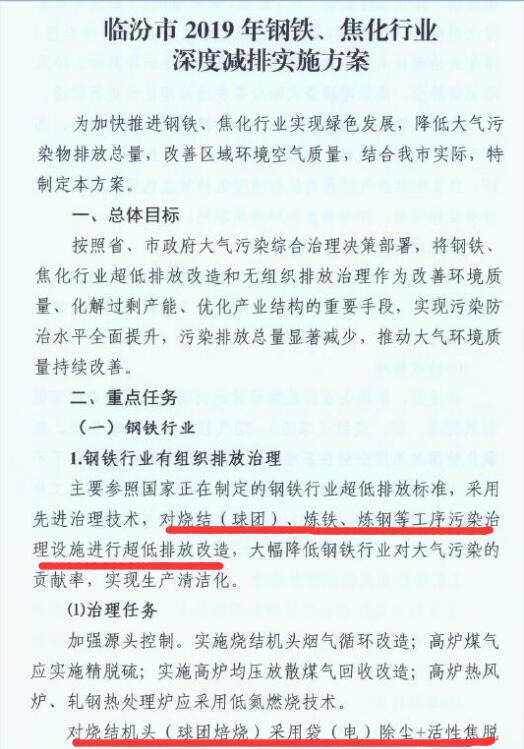 日前,山西臨汾印發(fā)《臨汾市2019年鋼鐵、焦化行業(yè)深度減排實施方案》。方案要求: