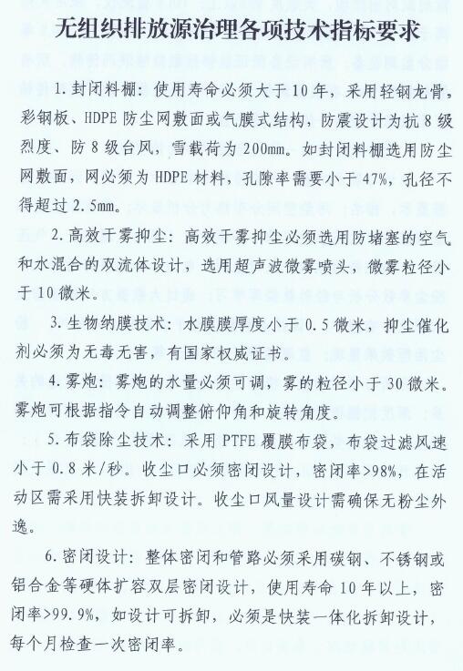 驗收標準:改造后,鋼鐵企業(yè)主要無組織排放源周邊1米處,顆粒物濃度小于5mg/m3;經(jīng)收集處理后的顆粒物有組織排放濃度小于10mg/m3 。