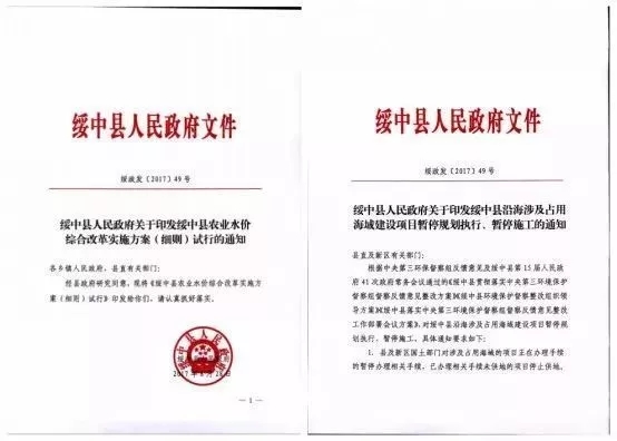 把一份文件復(fù)制粘貼過來,首先記得改文號。文號是一份紅頭文件的臉面,兩份文件湊合一個文號,你想過文件的感受么?遼寧省綏中縣一個綏政發(fā)[2017]49文號,匹配有兩個完全不同的文件。其中一份就屬于臨時編造、應(yīng)對環(huán)保檢查的假文件。而這個假文件背后,庇護(hù)著一個嚴(yán)重違規(guī)的圍填海項(xiàng)目建設(shè)。