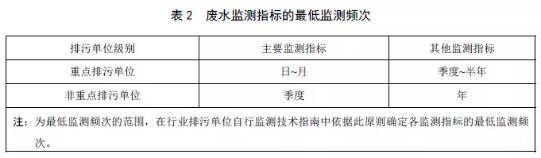 注:為最低監(jiān)測頻次的范圍,分行業(yè)排污單位自行監(jiān)測技術指南中依據(jù)此原則確定各監(jiān)測指標的最低監(jiān)測頻次。