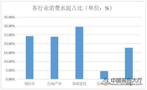 水泥消費幾乎出現(xiàn)在所有20個國民經(jīng)濟行業(yè)門類中,任何一個門類的投資活動,都有水泥的身影。這其中,與水泥消費關系最密切的有六大門類,分別是制造業(yè),房地產(chǎn)業(yè),水利、環(huán)境和公共設施管理業(yè),交通運輸、倉儲和郵政業(yè),農(nóng)、林、牧、漁業(yè),電力、熱力、燃氣及水的生產(chǎn)和供應業(yè)。