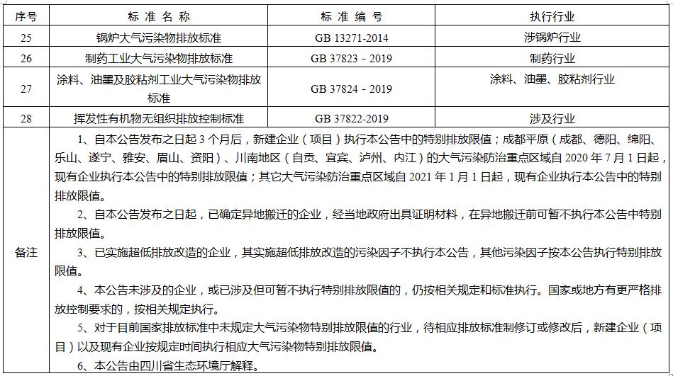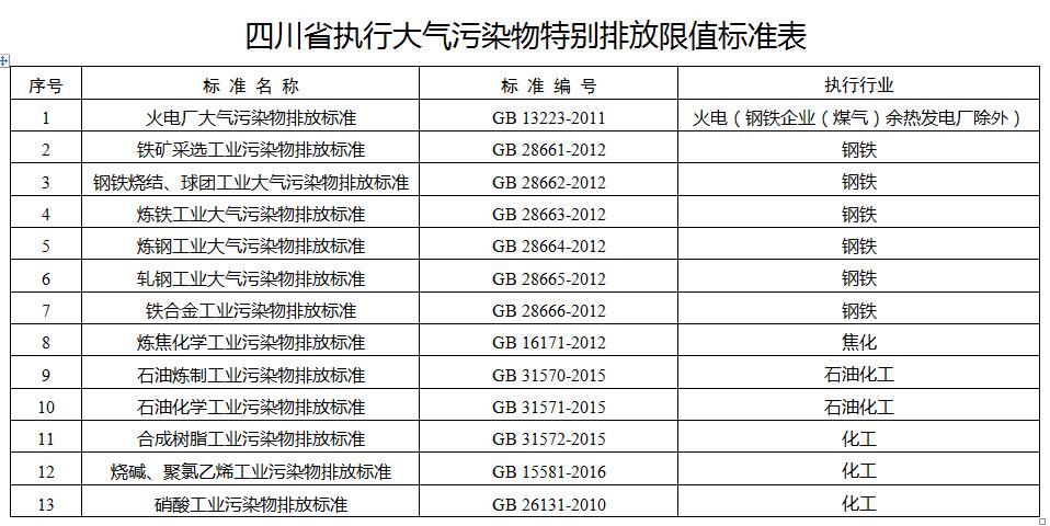 關(guān)于執(zhí)行大氣污染物特別排放限值的公告