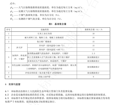 基準(zhǔn)氧含量(O2):耐火材料工業(yè)燒成窯:18/%;剛玉類工業(yè)熔煉爐、以電能轉(zhuǎn)換產(chǎn)生熱量的各類爐窯:按實(shí)測(cè)濃度計(jì);爐窯啟停階段(氧含量不低于19%的情形):按實(shí)測(cè)濃度計(jì)等。