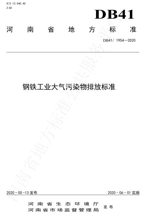 日前,河南發(fā)布地方標準《鋼鐵工業(yè)大氣污染物排放標準》,詳情如下: