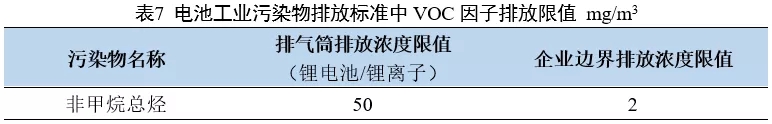 電池工業(yè)VOC污染物排放標(biāo)準(zhǔn)見(jiàn)下表。