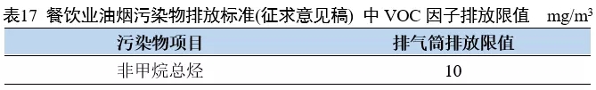 《餐飲業(yè)油煙污染物排放標(biāo)準(zhǔn)(征求意見(jiàn)稿)》中對(duì)于VOC的要求見(jiàn)下表。