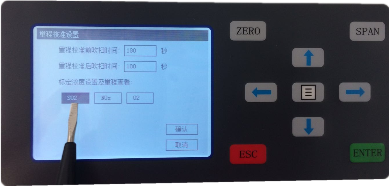 2.5 SO2標氣濃度值設(shè)置完成,按ESC返回上一級后,選擇NOx