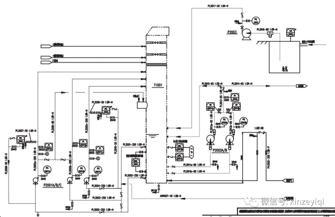 工藝水共有三路,一路為化工區(qū)凈循環(huán)工業(yè)廢水做為主路,一路為循環(huán)水,另一路為生產(chǎn)水(做備用)經(jīng)計量后進入工藝水槽儲存,工藝水槽中的工藝水經(jīng)工藝水泵輸送至各用水點,包括塔頂補水、除霧器沖洗水、各泵進口沖洗水、離心機沖洗水等。