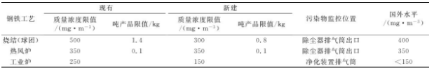 目前我國(guó)鋼鐵工業(yè)執(zhí)行的大氣污染物排放標(biāo)準(zhǔn)主要有《煉焦?fàn)t大氣污染物排放標(biāo)準(zhǔn)》和《工業(yè)爐窯大氣污染物排放標(biāo)準(zhǔn)》,并均已實(shí)施了12年。這些排放標(biāo)準(zhǔn)對(duì)控制國(guó)內(nèi)鋼鐵工業(yè)的污染物排放和推動(dòng)鋼鐵工業(yè)的技術(shù)進(jìn)步發(fā)揮了重要作用。