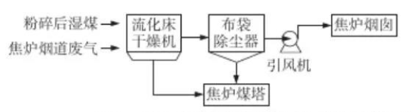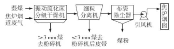 煤調濕是將煉焦煤在裝爐前除去一部分水分,保持裝爐煤水分穩(wěn)定在6%左右,然后裝爐煉焦。日本、俄羅斯等國家普遍使用,在我國煤調濕已成為焦化行業(yè)重點開發(fā)并積極推廣的技術。利用焦爐煙道廢氣煤調濕工藝不但可以節(jié)省能源,減少廢氣、廢水、廢熱的排放,而且可以提高裝爐煤堆密度及煉焦初期升溫速度、縮短結焦時間,從而實現節(jié)能降耗的目的。