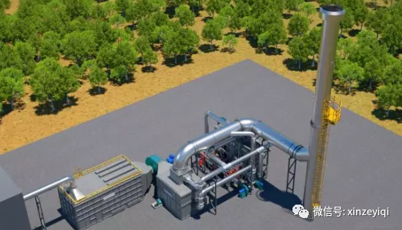 脫附風機取轉(zhuǎn)輪排出凈化氣體一部分與RTO的熱氣做熱交換,溫度達到150~180℃,對沸石轉(zhuǎn)輪進行脫附再生,脫附下來的氣體經(jīng)RTO風機抽吸牽引進RTO燃燒分解,脫附濃縮后的廢氣在RTO反應裝置中被加熱至750℃以上,燃燒成為二氧化碳和水,排放至大氣。