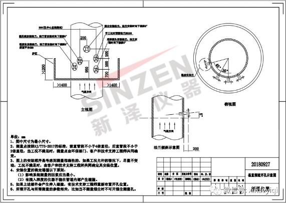 CEMS煙氣在線監(jiān)測(cè)設(shè)備的垂直煙囪開(kāi)孔示意圖