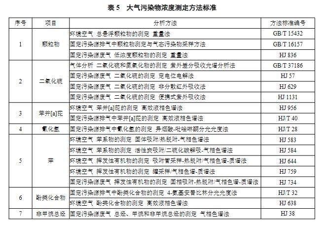 2.4 大氣污染物的分析測(cè)定采用表5 中所列的方法標(biāo)準(zhǔn)。