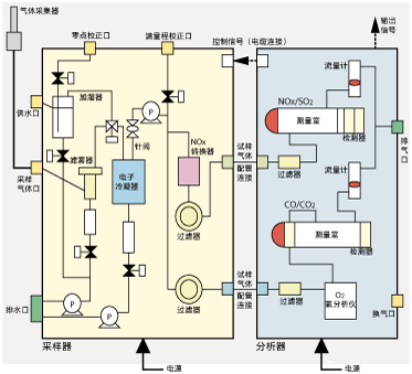 測(cè)量原理 | 非分散型紅外線方式:NOX、SO2、CO、CO2、CH4 | |